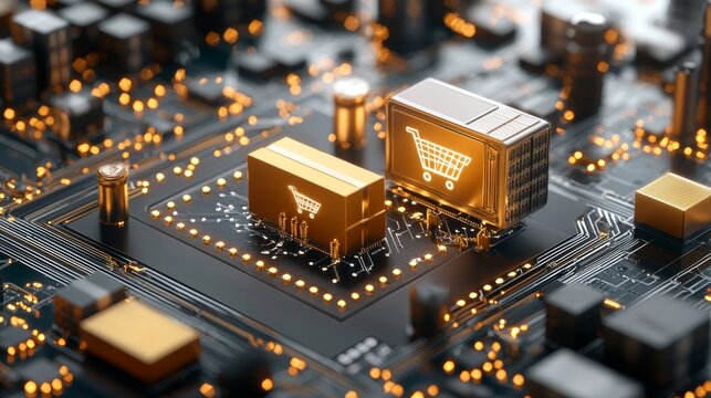E-commerce innovation revolutionizing digital shopping experience global technology sector graphic representation futuristic close-up perspective modern concepts