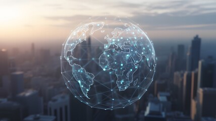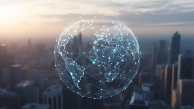 Abstract Illustration of a connected globe with digital icons, concept of global connectivity