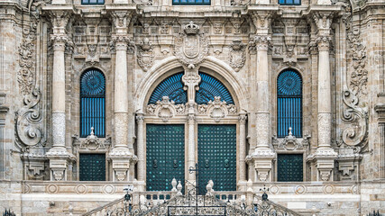 Pórtico de la gloria en la fachada del Obradoiro en la catedral de Santiago de Compostela, España