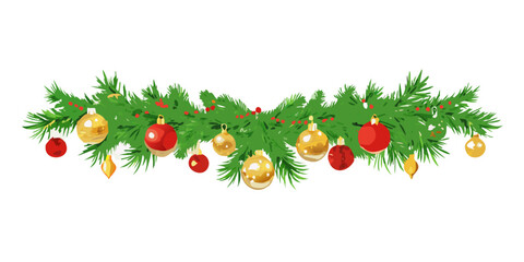 Christmas garland with red and gold baubles