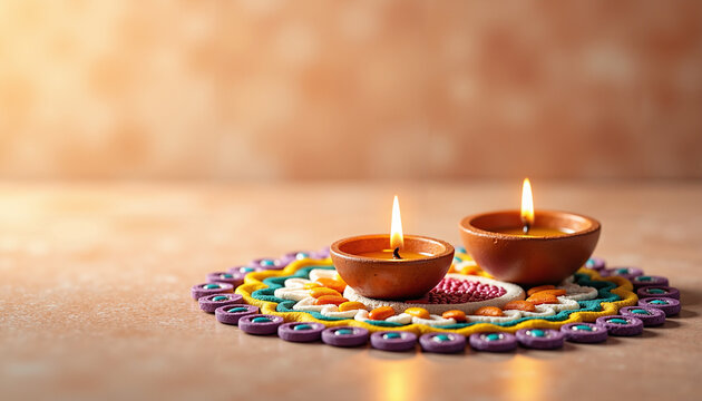 Vibrant vector background with glowing diyas, golden rangoli patterns, and sparkles/ diwali/dusshera