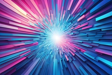 Neon lights form a glowing tunnel with blue and purple stripes ascending upwards. The vibrant trails create a futuristic and technological atmosphere.