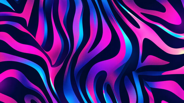 Vibrant neon zebra pattern with glowing pink, blue, and purple stripes in futuristic design