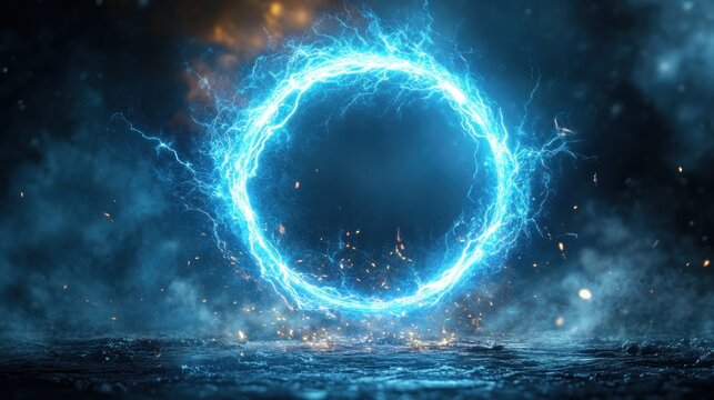 A glowing colorful ring of fire on black background, with the letter O in center, red and blue flames swirling around it, creating an enchanting atmosphere.