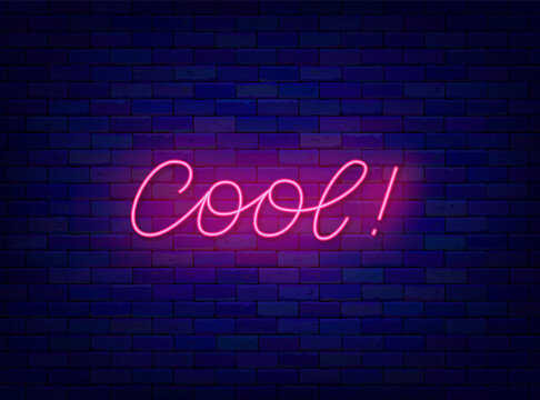 Cool neon lettering. Inspiration phrase. Light calligraphy. Glowing quote. Editable stroke. Vector stock illustration