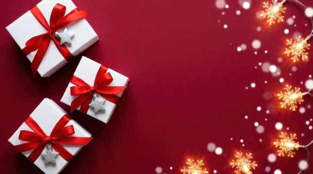 Cheerful christmas lamps glow over wooden table