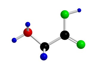 glycine, amino acid, molecular structures, 3d model, Structural Chemical Formula and Atoms with Color Coding