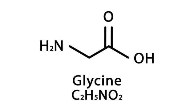 Glycine molecular structure. Glycine skeletal chemical formula. Chemical molecular formula vector illustration