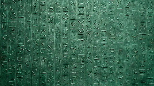 Seamless alien glyphs glowing on ancient monolith. Ancient Luminescent Glyphs. Illustration