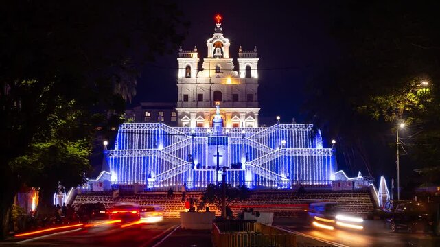 4K Timelapse Hyperlapse night footage of Our Lady of Immaculate Conception church in Panaji the capital city of Goa
