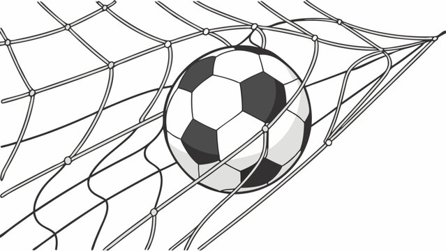 Soccer ball in net goal sports game victory competition championship illustration graphic design vector art black and white monochrome drawing artwork design element sports equipme.