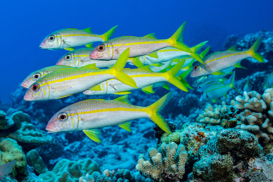 yellowfin goatfish shool fish on reef