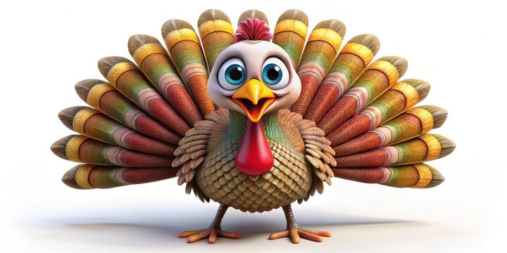3D Cartoon Turkey with Colorful Feathers, 3D rendering, digital art, Thanksgiving, turkey, cartoon