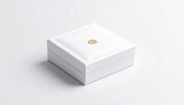White square jewelry box with gold accent, showcasing a minimalist design.