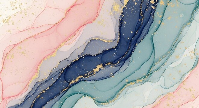 Abstract geometric design featuring dark blue and gold accents Clean lines and textured surfaces create a modern aesthetic