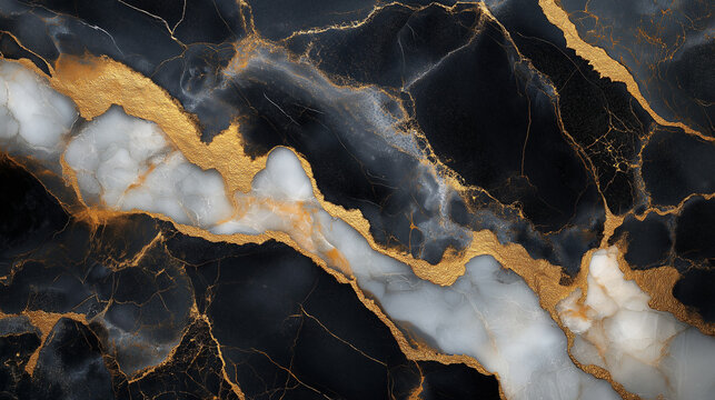 Golden Veins. This elegant image of black and white marble with gold accents. The interplay of dark and light with shimmering gold lines gives it a luxurious and timeless appeal