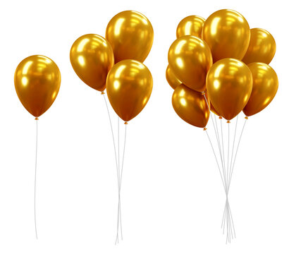 Gold balloons png element set on transparent background