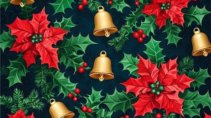 Festive Gold Bells and Red Ornaments Christmas Decoration.
