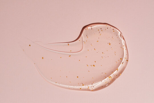 Luxurious gold flecked cream gel texture on pink