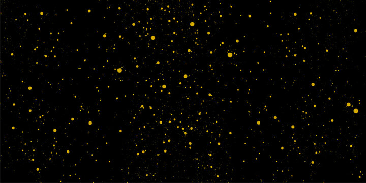 Falling gold glitter background. Small sparkling confetti wallpaper. Splashing gold dots texture. Design element for posters, Christmas birthday decorations.