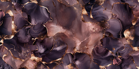 3d rendering abstract texture black and gold floral pattern background. AI generated image