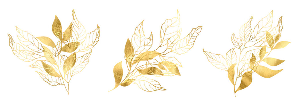 Set of Gold floral elements for design, abstract flower vector decor, decorative corner ornaments..eps