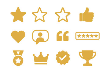 Gold icon set: stars, medals, trophies, and more in flat design