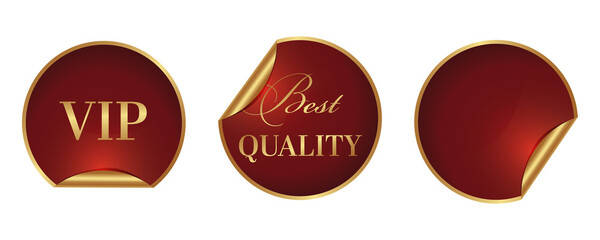 Premium gold label badges with elegant ribbons, round seals, crown icons and shiny metallic highlights. High-quality vector set for luxury certificates, award stickers, VIP membership branding and exc
