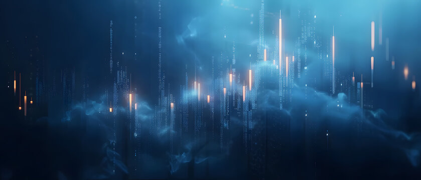 Abstract Background with Futuristic gold Lights of candlesticks for the Forex stock market. Copy space.