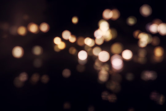 Radiant festive bliss. Bright bokeh circles creating abstract christmas glow. Shimmering holiday magic. Abstract blue and gold lights in defocused night sky
