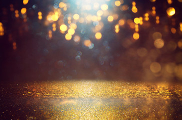 Vintage Lights Background Gold Lights And Blue Glitter Defocused