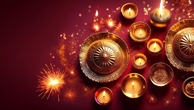 A traditional Diwali celebration features a maroon surface decorated with gold motifs, _1(715)