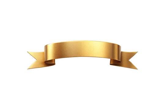 Curved gold ribbon banner with dimensional perspective and lustrous metallic surface creating elegant decorative element, isolated on a transparent background