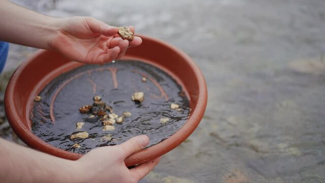 biggest gold nuggets in the pan close up,Finding gold