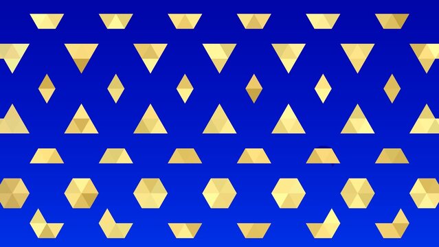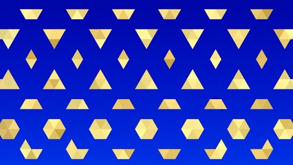 Abstract geometric gold shapes on a vibrant blue background in a modern pattern