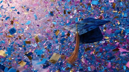 A gold tassel hangs from a black cap, signifying the wearer has earned a degree.