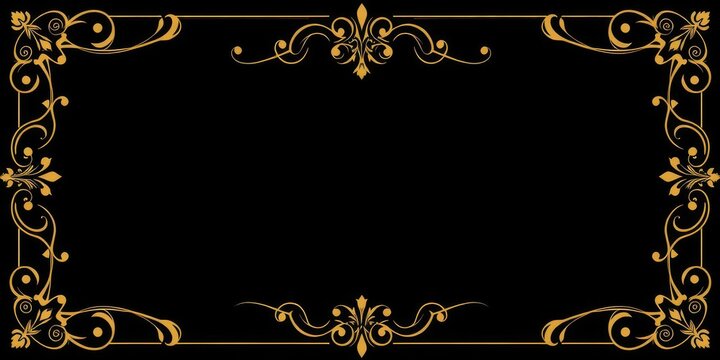 Golden art deco frame on black background, with text A Very Gatsby New Year. Representative of festive, elegant, and retro themed celebration