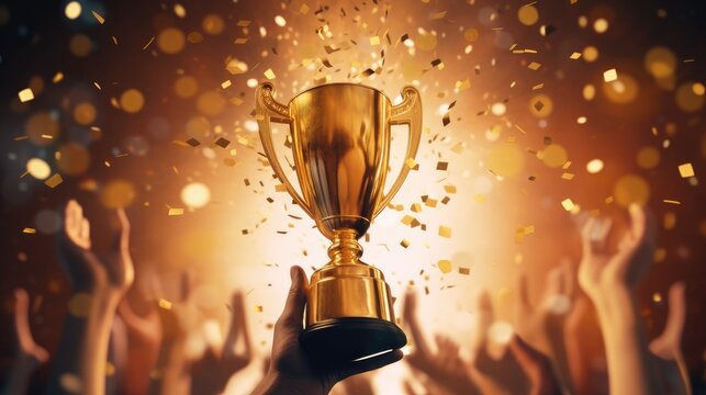 the gold trophy awarded in close up. Generative AI
