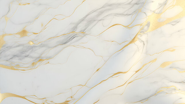 Luxurious white marble surface with gold veins, perfect for high-end design backgrounds