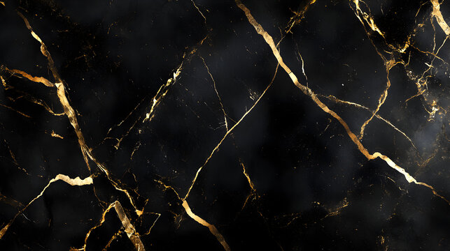 A stunning close up of black marble with intricate gold veins resembling a sky full of clouds, a natural landscape or a dark mysterious water scene