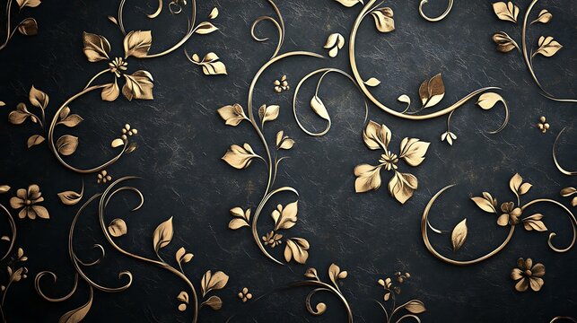 Art deco floral wallpaper with intricate gold vines on a dark background