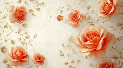 Elegant Peach Roses with Delicate Gold Vines and Leaves
