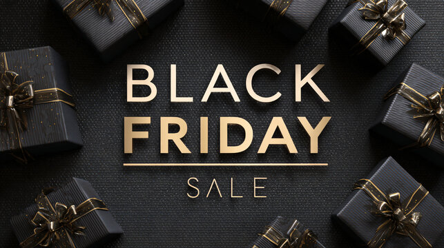 Exclusive Black Friday sale with elegant wrapped gifts and golden accents