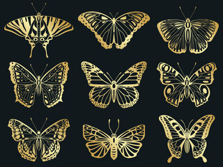 Abstract golden wings on black background