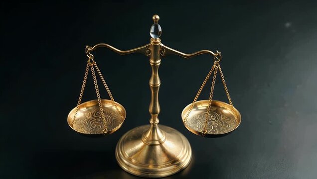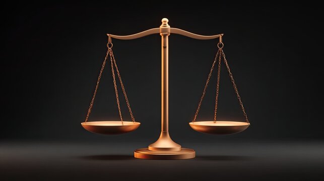 Golden balance scales of justice symbolizing fairness, law, and ethical decision-making against a dark background