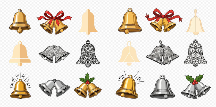Two volumetric realistic golden Christmas bell isolated on white background