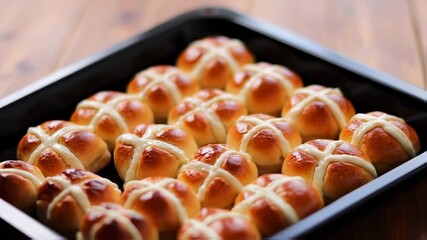 Minimalist composition of golden brioche buns on light cream background, airy shadows