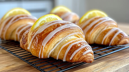 Flaky croissant pastry, golden and buttery texture