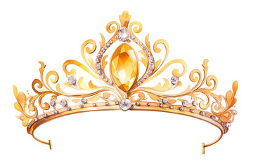 golden tiara in watercolor style isolated on a transparent background, generative ai