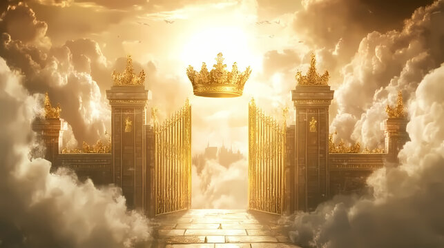 Eternal life: the crown and golden gates - imagine a crown and golden gates, symbolizing the promise of eternal life in heaven. Eternal. Illustration